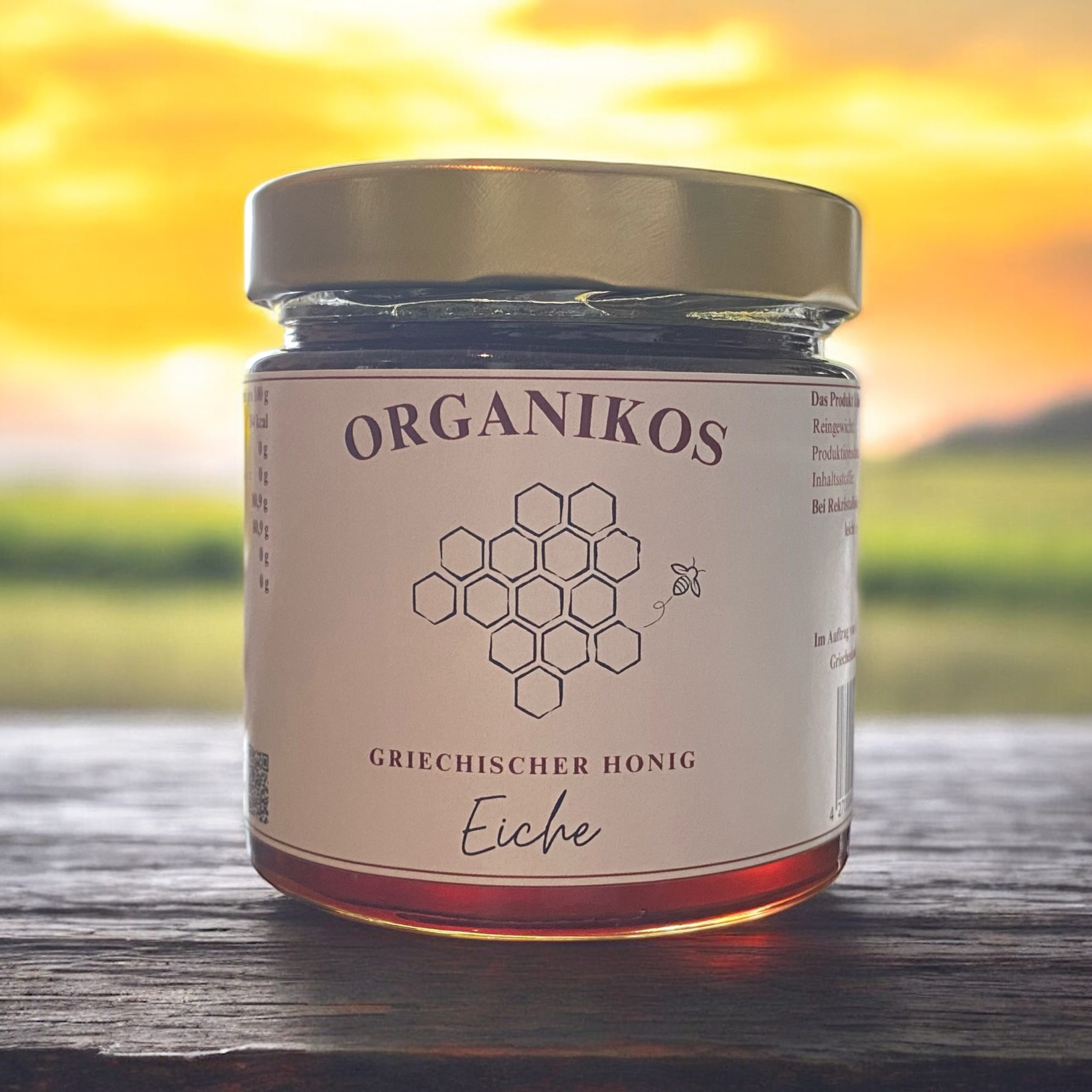 Eichenhonig aus Griechenland – Genießen Sie die reine Natur Griechenlands mit unserem exquisiten Griechischen Eichenhonig. Dieser köstliche Honig wird von Bienen in den unberührten Wäldern Griechenlands gesammelt, wo die duftenden Blüten der Eichenbäume eine einzigartige Geschmacksnote verleihen.