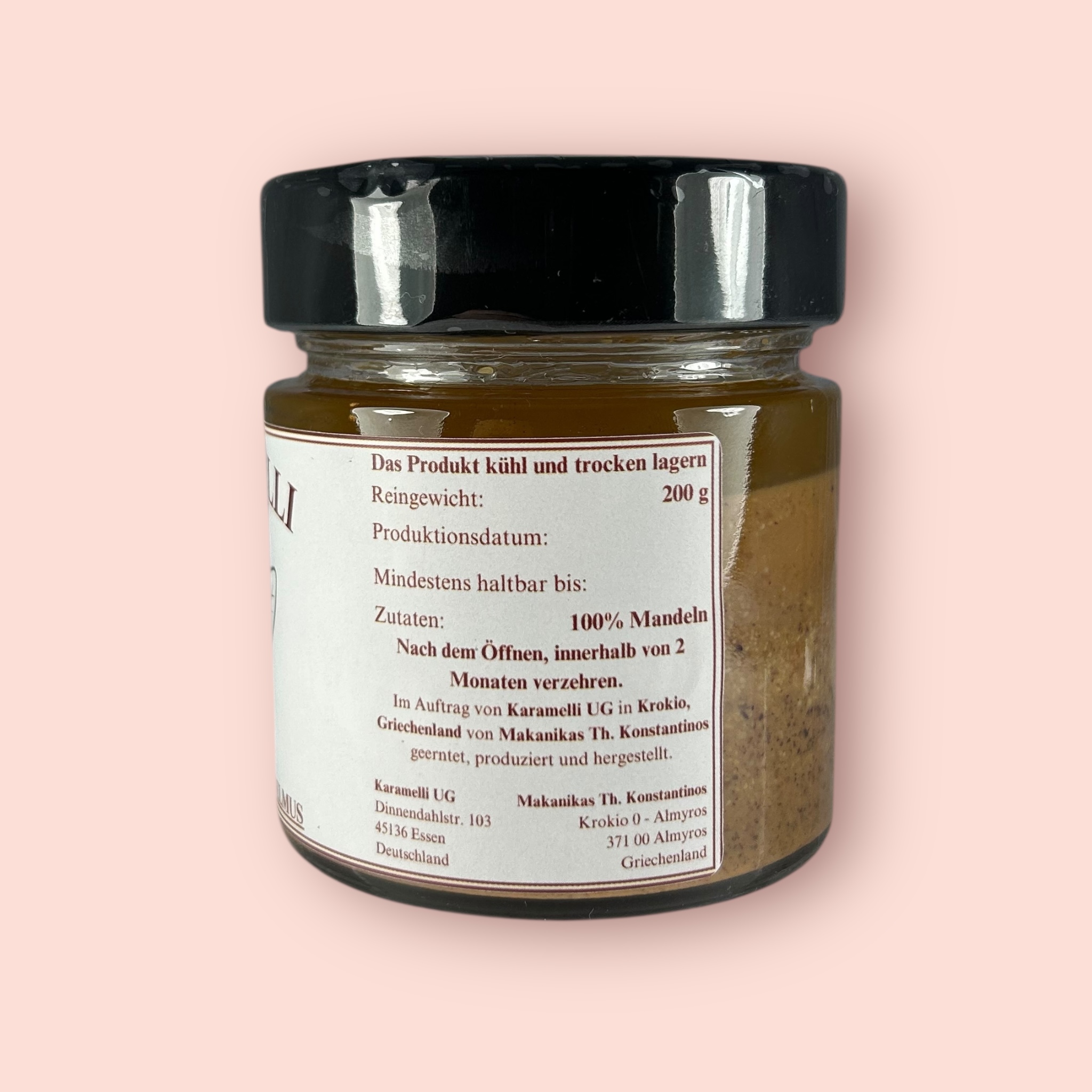 Unser Mus wird in einem schonenden Verfahren hergestellt, um die natürlichen Aromen und Nährstoffe der Mandeln bestmöglich zu bewahren. Ohne Zusatzstoffe und Konservierungsmittel entsteht ein Produkt, das nicht nur köstlich schmeckt, sondern auch einen Beitrag zu einer gesunden Ernährung leistet. Jeder Löffel Mandelmus ist ein Genussmoment, der die Frische und Qualität der griechischen Mandeln widerspiegelt.