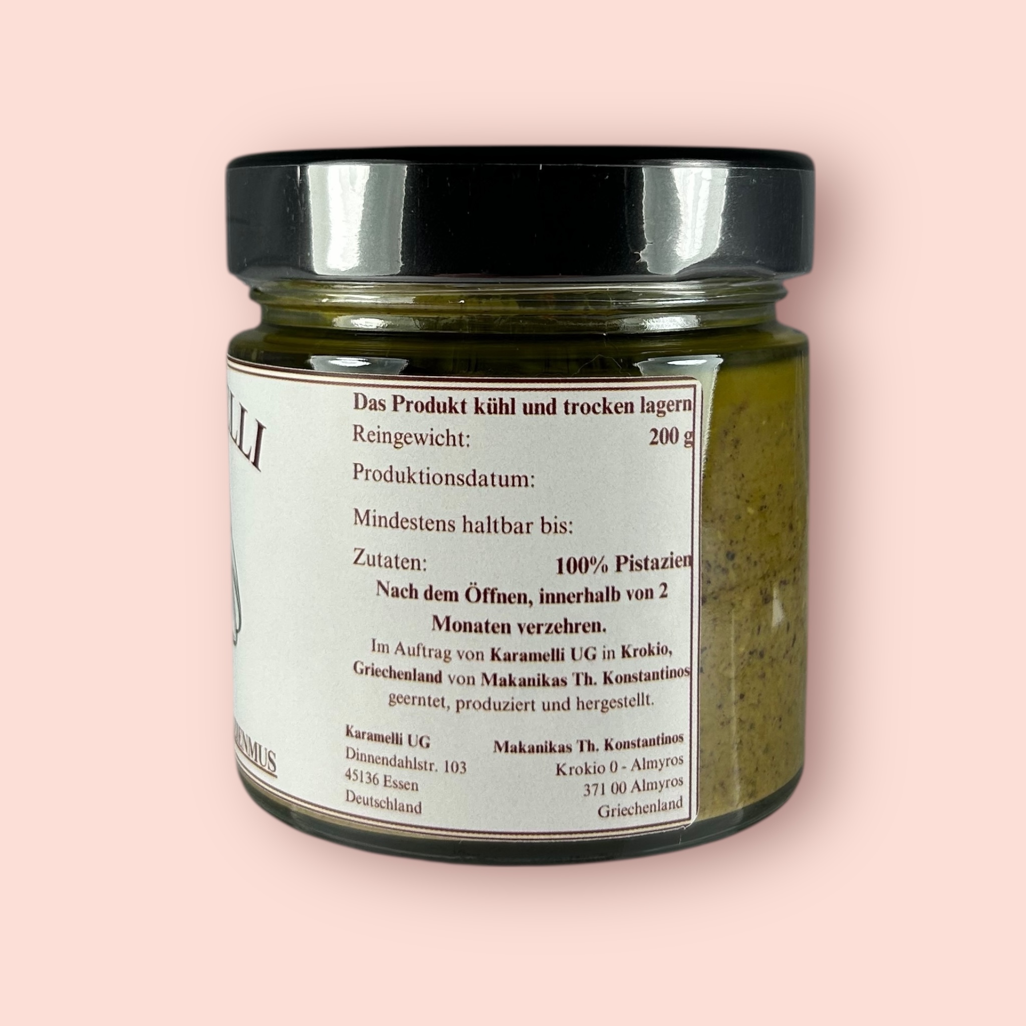 Tauche ein in die Welt des exquisiten Pistazienmus aus Griechenland, einem Produkt höchster Qualität, das von einem traditionellen Familienbetrieb mit Liebe und Sorgfalt hergestellt wird. Unsere Pistazien stammen aus den sonnenverwöhnten Plantagen Griechenlands und werden sorgfältig ausgewählt, um sicherzustellen, dass nur die besten und reifsten Früchte in unser Pistazienmus gelangen.
